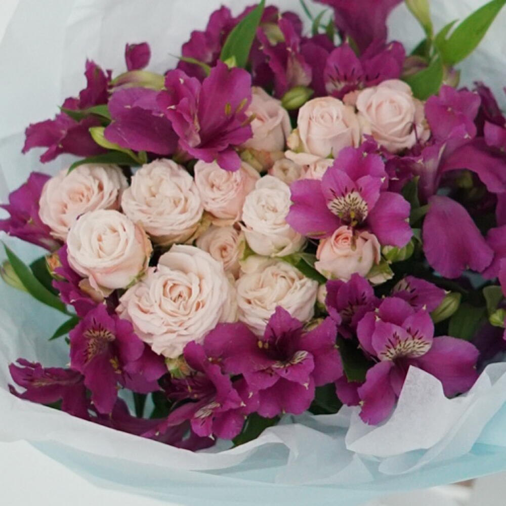 Alstroemeria - 7 шт. peony spray rose - 3 шт. packaging design - 2 шт. gift message card - 1 шт. care instruction - 1 шт. delivery - 1 шт.